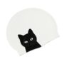 Gorra para natación fabricada en silicón en color blanco con diseño de gato en color negro.